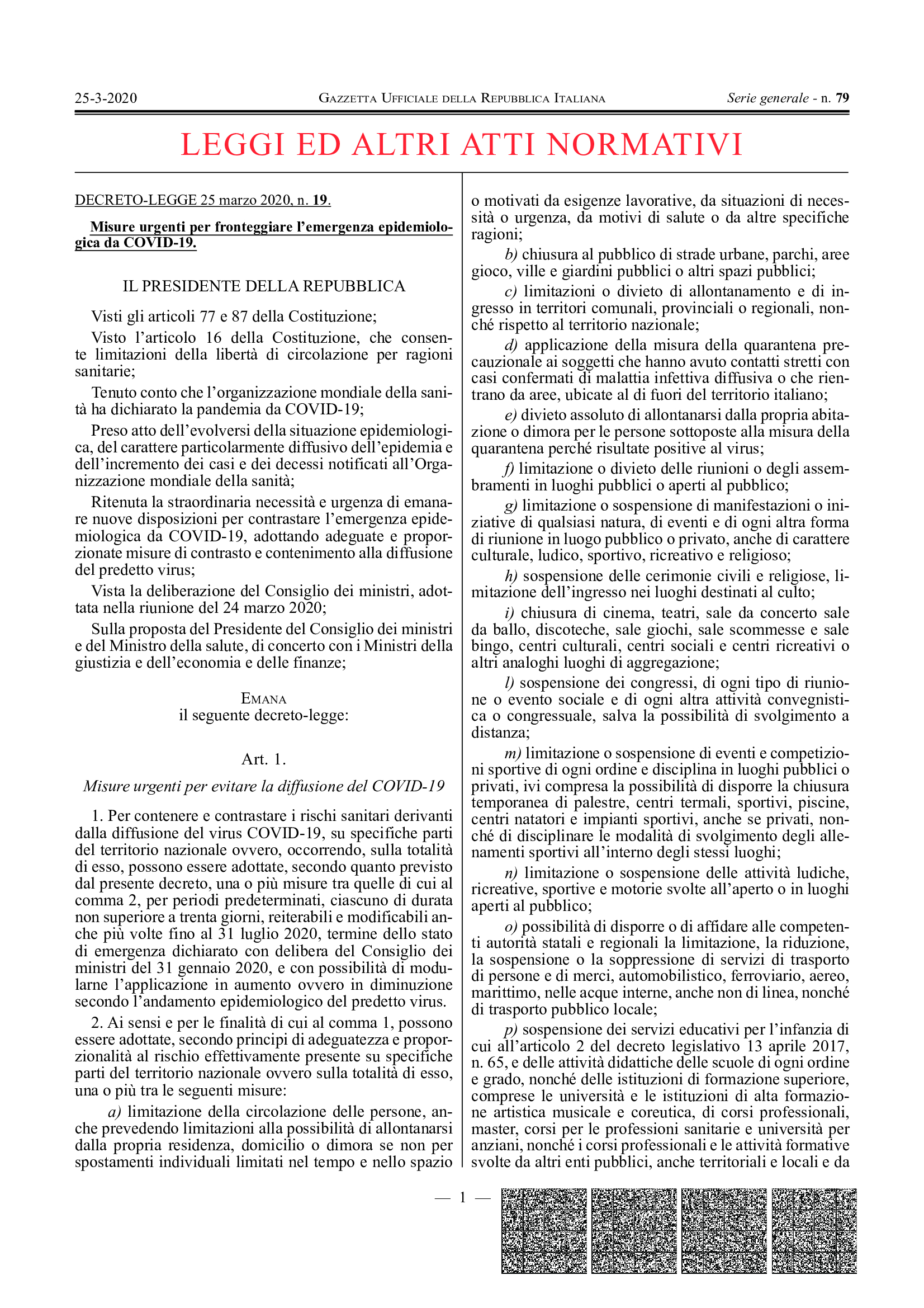 DECRETO-LEGGE 25 marzo 2020 n. 19. Misure urgenti per fronteggiare l’emergenza epidemiologica da COVID-19